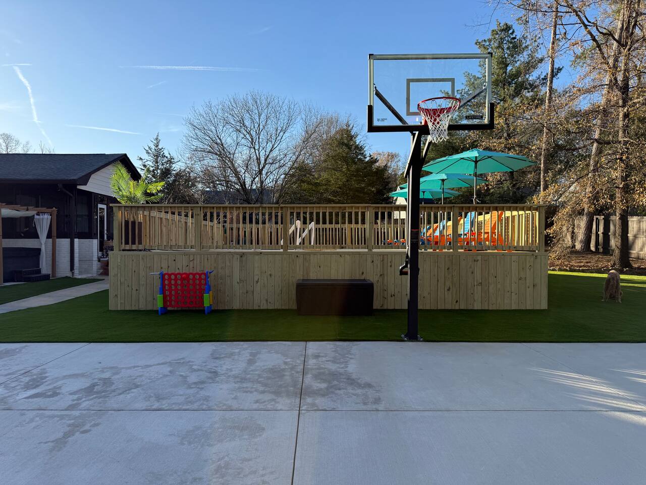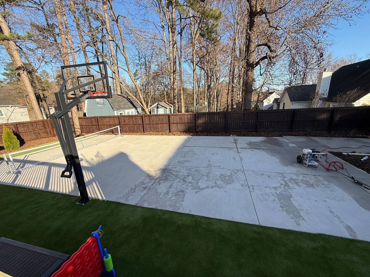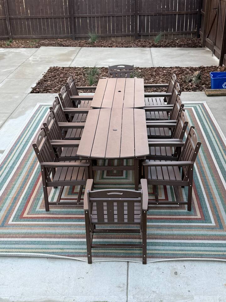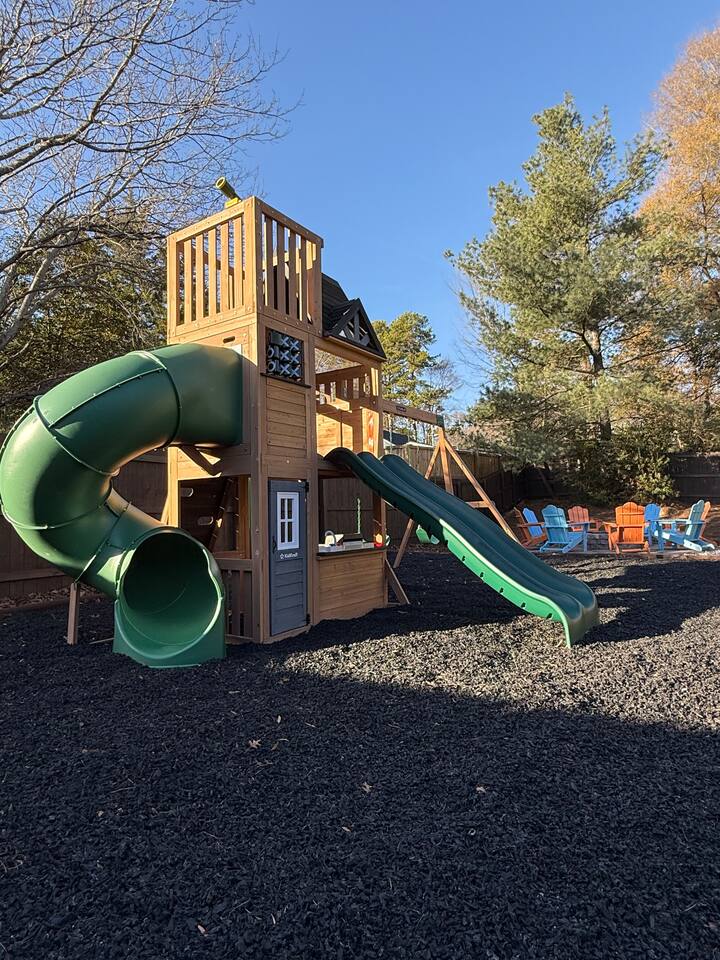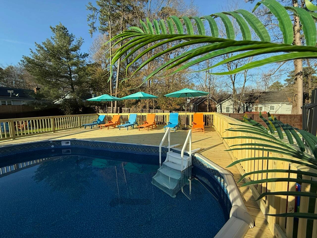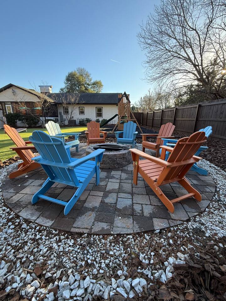 -Private backyard oasis with pool, hot tub, and pickleball/basketball court. -Playground + yard games: cornhole, giant Jenga, and oversized Connect 4. -Outdoor dining table seats 12 — ideal for group meals -Pool heating available October–April with 2+ days’ notice ($50/day) -Pickleball court currently has temporary striping until warmer temperatures allow for permanent surfacing to be applied -Fire pit for cozy evenings. Firewood available at Walmart on E. Independence Blvd. Any firewood left by the pit is free to use.